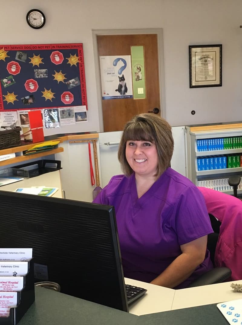 JoAnn has been a member of our clinic since 2014. She is married with one daughter and a step-son. She moved from Maine to Searcy, but spent time in Florida where she raised and showed silver Persian cats. JoAnn has many pets, including 3 cats- Pooh, Feetz, Lucy, a tortoise named George, a cichlid named Gunner, a beta named Dominic, and a snake named Conan! JoAnn enjoys staying at home, cooking, and watching movies. She has always been interested in working at a veterinary clinic. She is very passionate about all animals and enjoys caring for them and interacting with our clients.